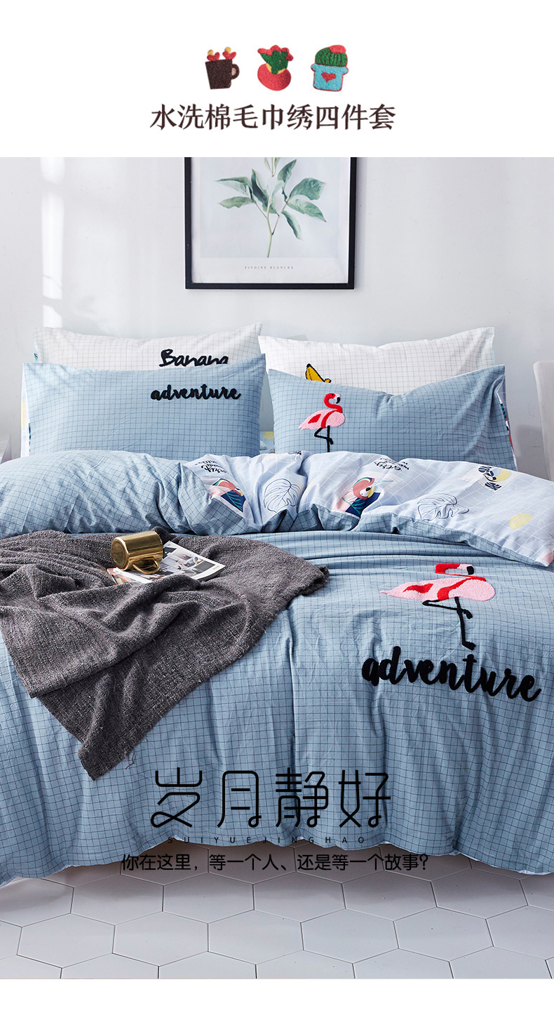 恒源祥家紡四点セット純綿水洗い綿刺繍四点セット1.5 m/1.8 mダブルベッドシーツ布団セット雨林緑(新)1.5 mベッド/布団セット200*230 cm【写真価格ブランド見積】-京東
