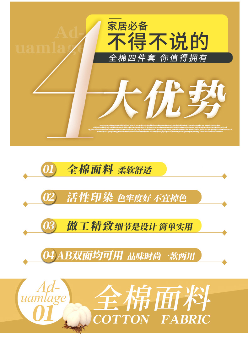 恒源祥家紡純綿四点セット柔軟で快適なカバーシーツ枕カバー1.5 m/1.8ベッド用品セット迷森-黄1.8 mベッド/布団カバー220*240 cm